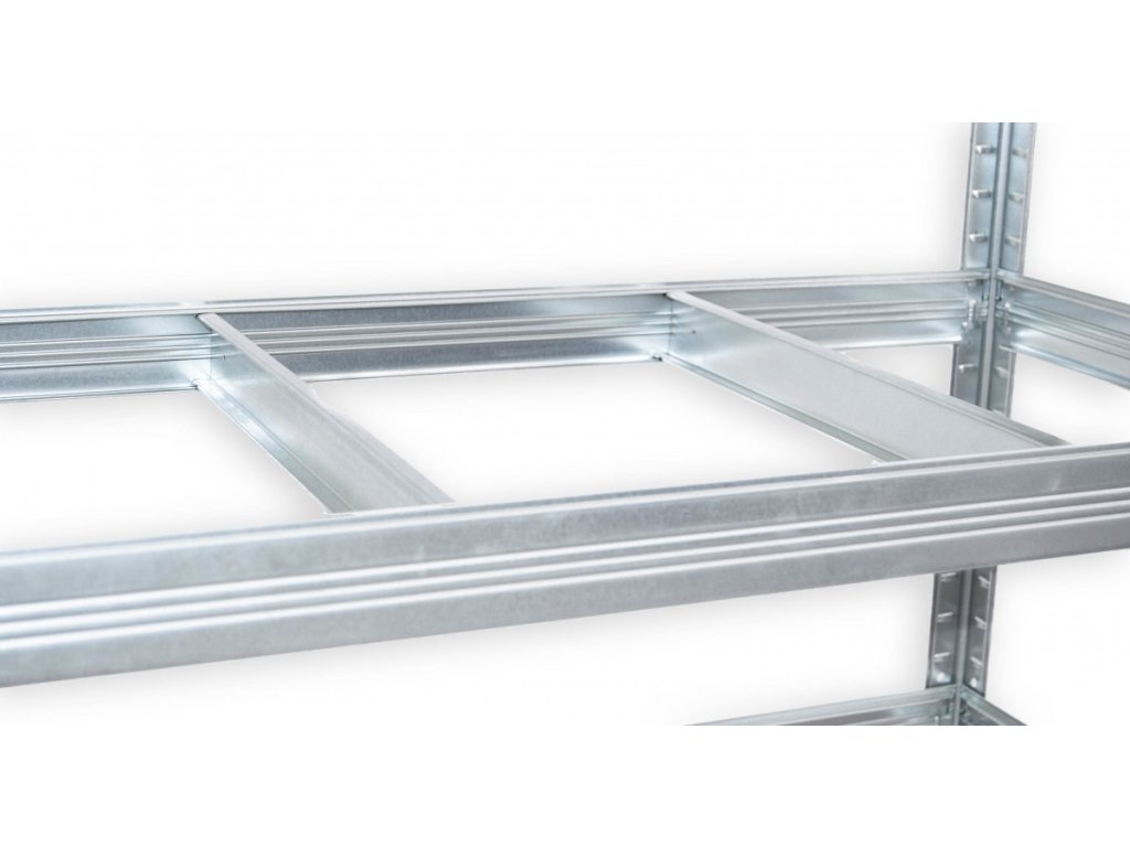 Kovové regály - kovová konštrukcia, police biela laminovaná drevotrieska 12 mm, ohranená ABS hranou zo všetkých strán. Police regálu preto sú odolnejšie proti vlhkosti. Údržbu regálov môžete robiť vlhkou handrou, ale nezabudnite na konci utrieť police do sucha . Regály sa jednoducho a rýchlo montujú, nosníky nasadíte do stojin a klepnutím dorazíte diely na doraz. Tento regálový systém je veľmi stabilný - žiadne skrutky! Regály sú vhodné do suchej pivnice, na pôdy, do skladov, do predajni, do dielne, do archívov