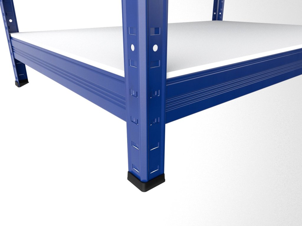 Kovový regál s policami z bielej laminovanej drevotriesky (hrúbka 12 mm), ktoré sú ohranené ABS hranou zo všetkých strán. Vďaka tomu sú police odolnejšie voči vlhkosti a ľahko sa udržiavajú – stačí ich utrieť vlhkou handrou a dosucha vytrieť. Montáž je rýchla a jednoduchá vďaka bezskrutkovému systému, ktorý zaručuje vysokú stabilitu.