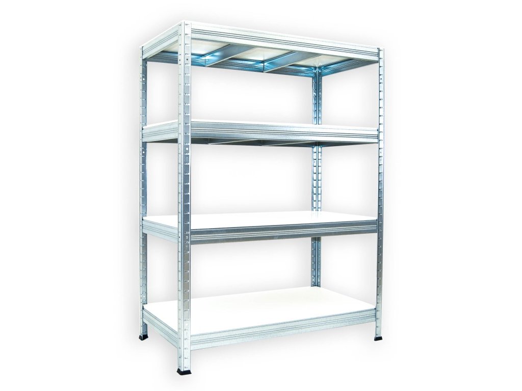 Kovový regál Biedrax 50 x 90 x 120 cm, pozinkovaný - 4 police biele lamino 12mm, 300 kg