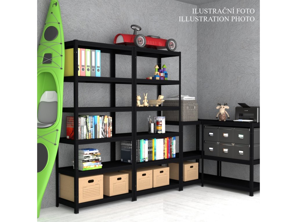 Kovový regál Biedrax 40 x 60 x 180 cm, čierny - 5 políc kovových